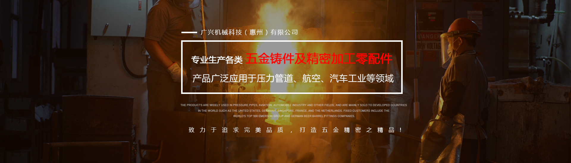 公司專業生產各類五金鑄件及精密加工零配件,可熔煉材質為全系列不銹鋼及碳鋼,主要生產材質有304316316L17-4430409等,年生產各種不銹鋼鑄件1000余噸。產品廣泛應用于壓力管道、航空、汽車工業等領域,主要銷往美國、德國、新加坡、法國、荷蘭等世界發達國家,固定客戶有世界500強艾默生集團及德國啤酒桶配件公司。